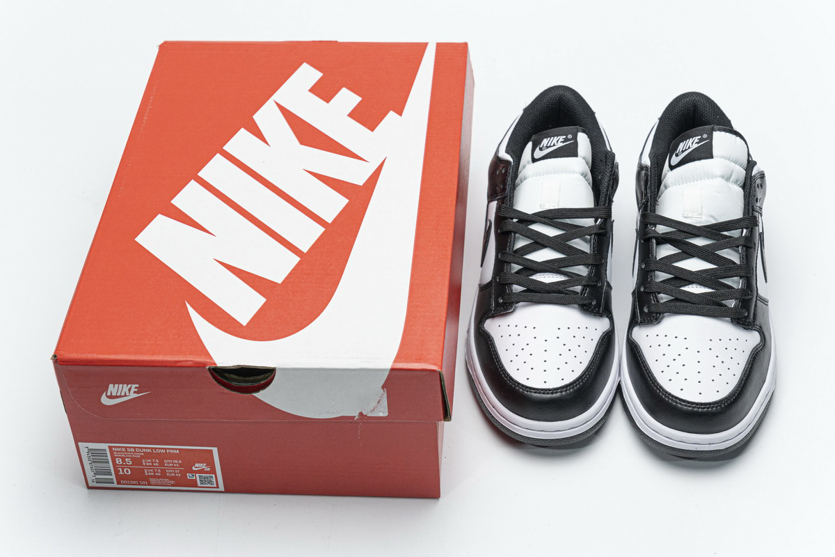 Product description: The Nike women’s Dunk Low ‘Black White’ highlights classic color blocking on a vintage silhouette originally released in 1985. The all-leather upper features a crisp white base with contrasting black overlays and a matching black Swoosh. Nike branding lands on the heel tab and woven tongue tag in keeping with the sneaker’s OG aesthetic. The low-top is supported by a durable rubber cupsole, equipped underfoot with a basketball-specific traction pattern.