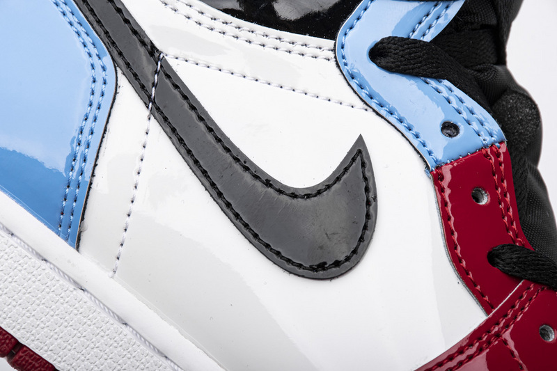 Product description:Dressed in a UNC and Chicago color blocking, this Air Jordan 1 features a University Blue and Varsity Red patent leather overlay with White underlays, Black Swoosh logos and tongues atop a White midsole and Red outsole. Completing the design is a quote from MJ’s basketball Hall of Fame induction speech that reads, “Limits, like fear, are often just an illusion” with a line through the bold word “FEAR” printed on the insoles.