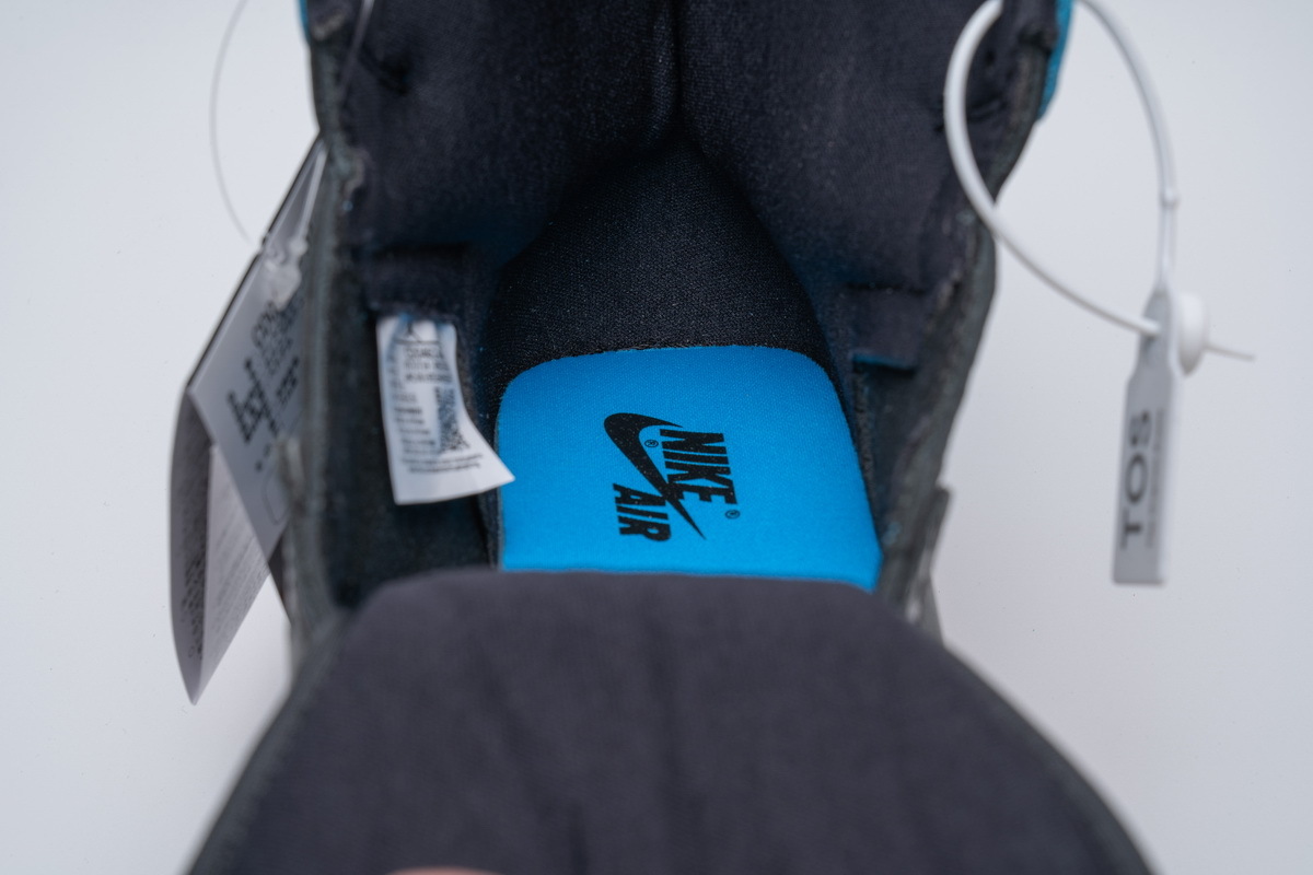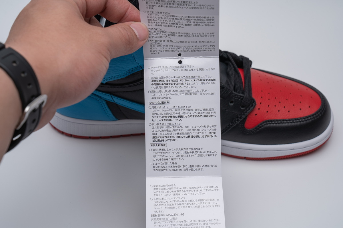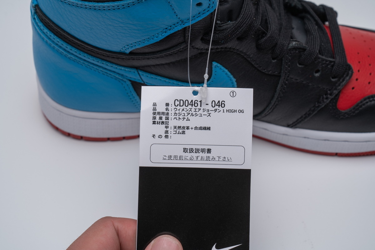 Product description:This Air Jordan 1 features Red on the toe area, tongue, and outsole to give off that “Bred” vibe, while Powder Blue is used on the heel and Swooshes. Black tumbled leather overlays atop a White midsole completes the design.