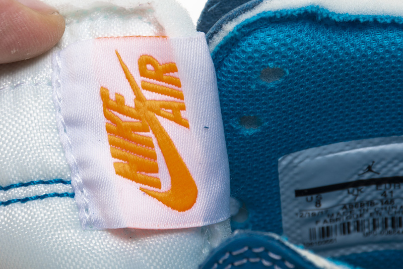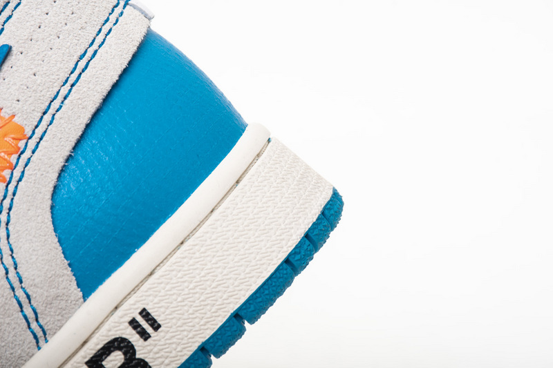 Product description:Dressed in a White, Cone, and Dark Powder Blue color scheme. This Air Jordan 1 will have a UNC-like vibe. Featuring a White upper, Powder Blue overlays, Black text, and Orange accents.