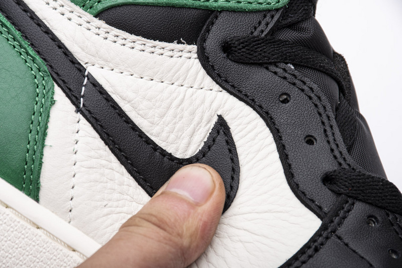 Product description:Dressed in a Pine Green, Sail and Black color scheme. This Air Jordan 1 features Pine Green on the toe box, tongue label, heel and rubber outsole. Black covers the tongue, laces, Wings logo, Nike Swoosh and overlay on the toe. Finishing off the design is White on the mid-section as well as on the midsole.