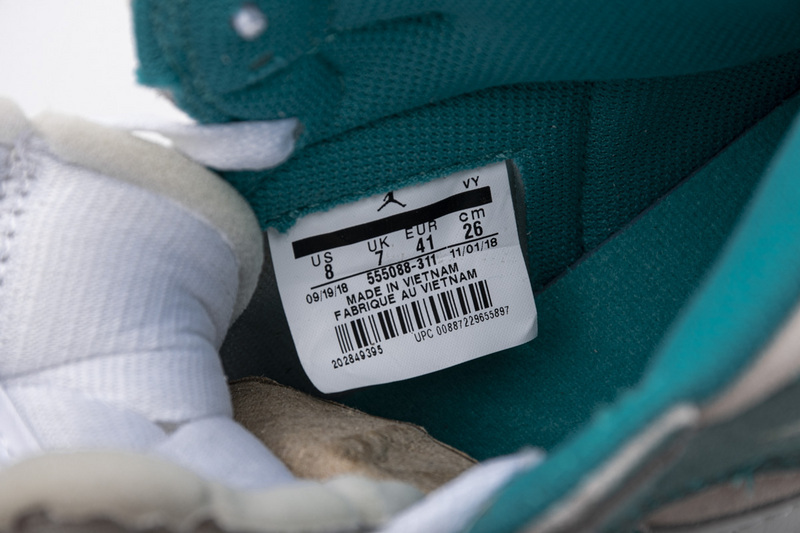 Product description:Dressed in a Tubro Green, White, Light Smoke Grey and Sail color scheme. This Air Jordan 1 comes in a pre-worn look with text that reads “SP 19 Air Jordan 1 High OG” on the lateral panel. Its Green and White upper with Yellow Nike Air tongue labels atop a Sail midsole and Grey rubber outsole completes the design.