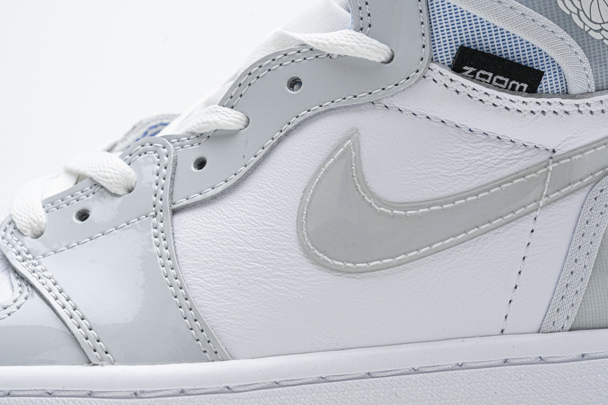 Product description:Dressed in a White and Racer Blue color scheme. This Air Jordan 1 High comes constructed in a mix of mesh, patent leather, tumbled leather, and translucent TPU overlays. Other details include a “Zoom” tag on the lateral side, along with “Zoom Air” branding on the tongues and insoles.
