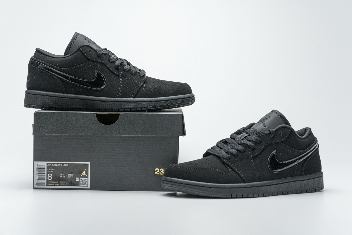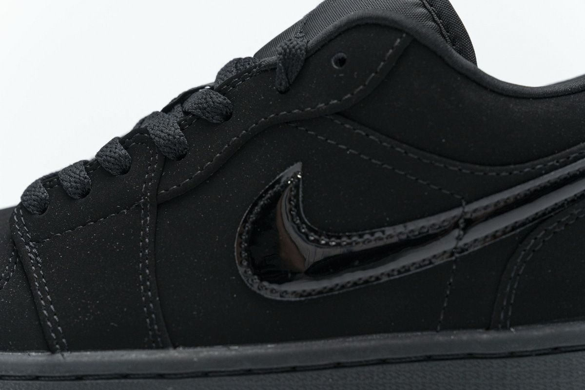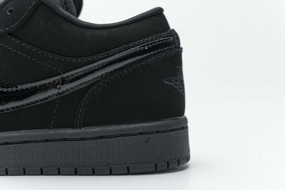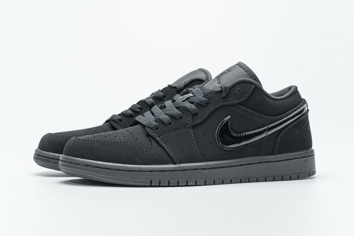 Product description: This latest offering receives the popular “Triple Black” color blocking. It features a Black nubuck upper with patent leather Swoosh logos and stitched branding on the heels. A solid Black rubber sole completes the design.