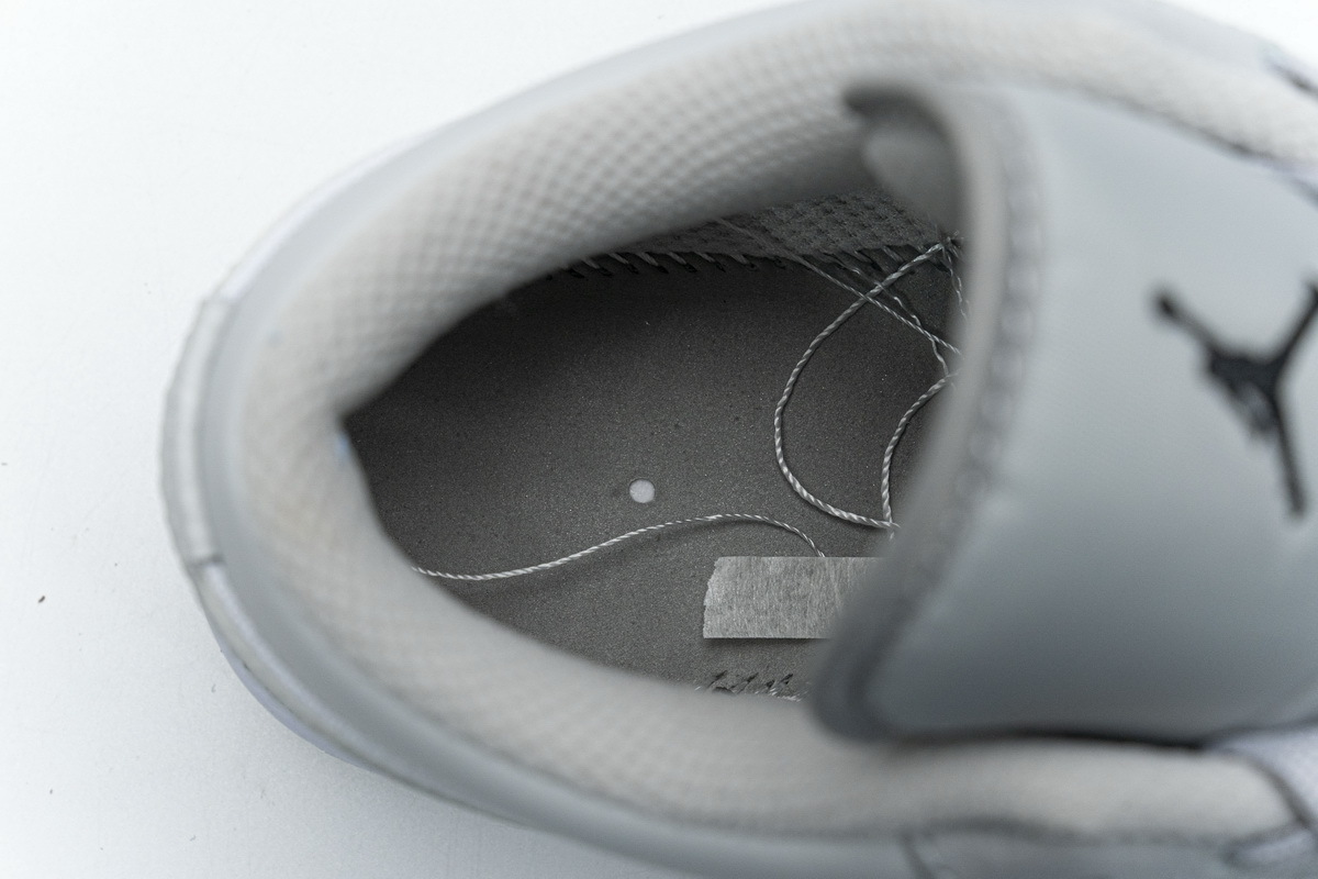 Product description: The design comes in a pure white with light gray on the vamp, eyelets, collar, heel and outsole, while white offers contrast in the middle. Each Swoosh combines the white and grey into a camouflage pattern and winds around the back of the shoe, connecting to the other Swoosh on the opposite side. The laces themselves are also gray, and the toe is made of perforated leather. A black Jumpman adorns the tongue and a black Air Jordan Wings logo is on the heel.