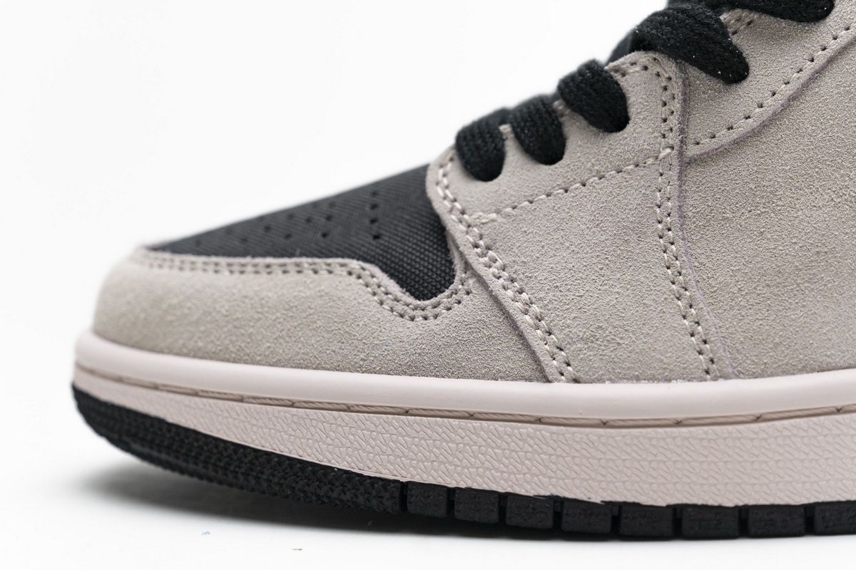 Product description:This offering of the Air Jordan 1 Mid features a Pinkish/Beige suede upper with Black covering the ballistic toe cap and Swoosh overlay, nylon tongues, liners, and rubber outsole. Highlighting the shoe is an iridescent heel collar and heel overlay to complete the design.