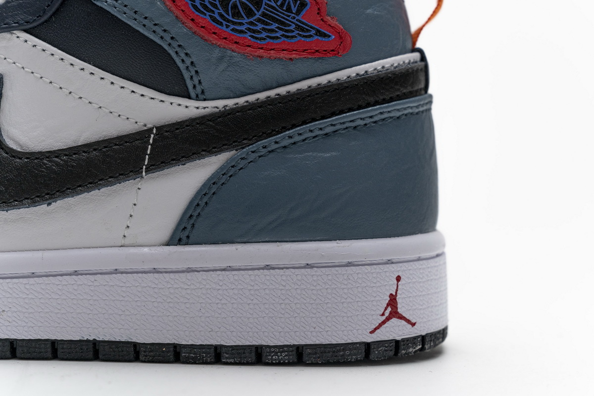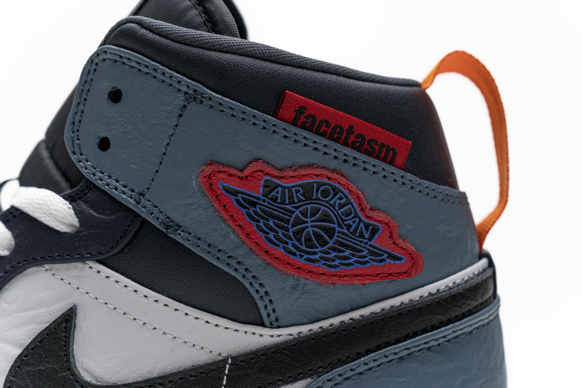 Product description:This collaboration features a White leather upper with Light Blue overlays paired with Navy smooth leathers. An Orange heel tab with Facetasm branding with bright outlines on the Wings logo atop a White midsole that includes a mini Jumpman on the heel completes the design.
