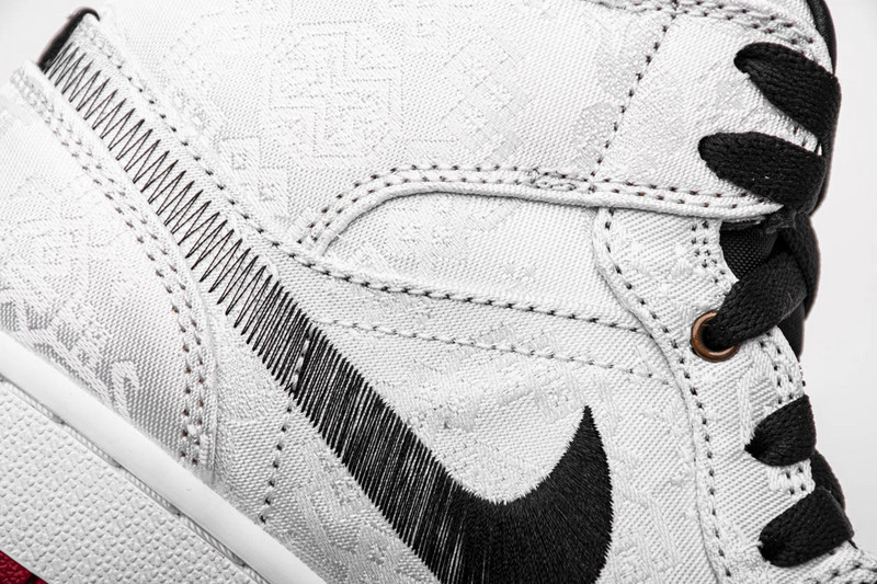 Product description:This Jordan 1 Mid SE is composed of white woven nylon upper with a fadeaway Swoosh that represents the hidden details revealed under the shoe’s upper by natural wear or customization. A Chinese token-inspired lace embellishment and black detailing completes the design.