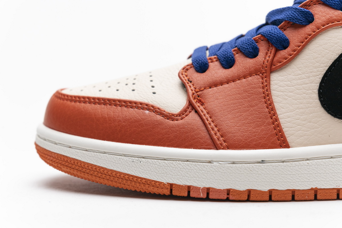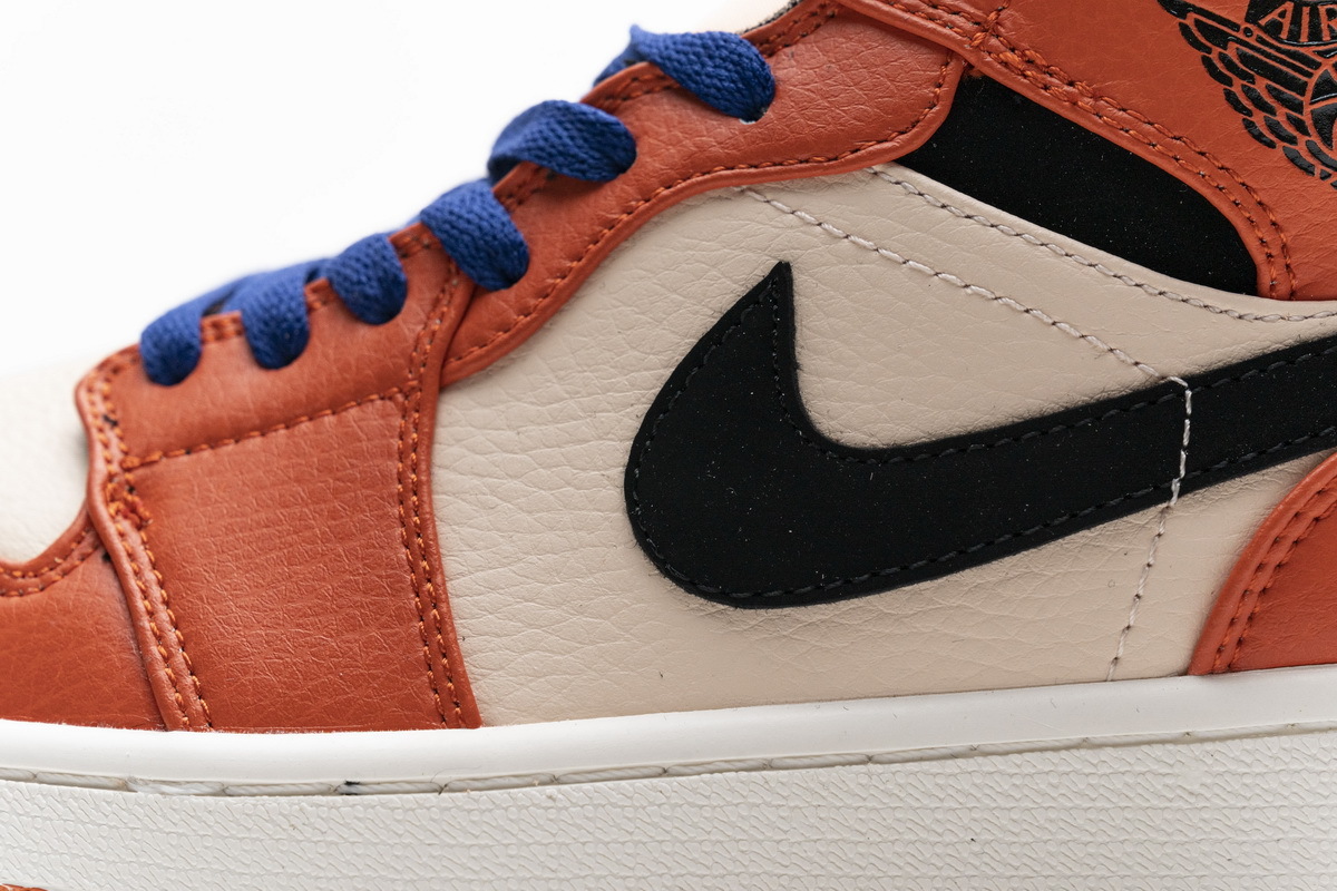 Product description:It features a Sail underlays with Team Orange overlays paired with Black detailing for that “Shattered Backboard” vibe. Added Blue laces gives off a Knicks theme, completed with a White midsole and Orange rubber outsole.