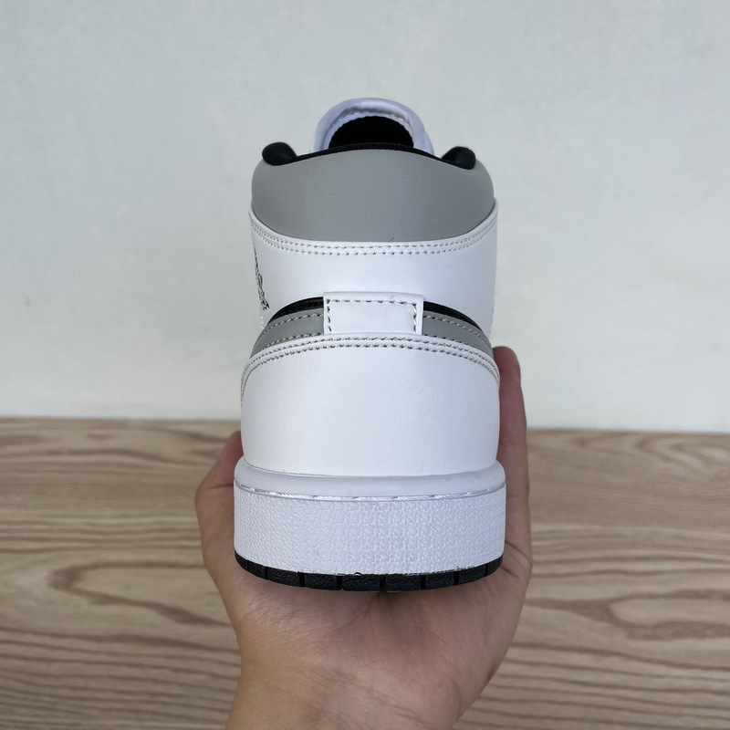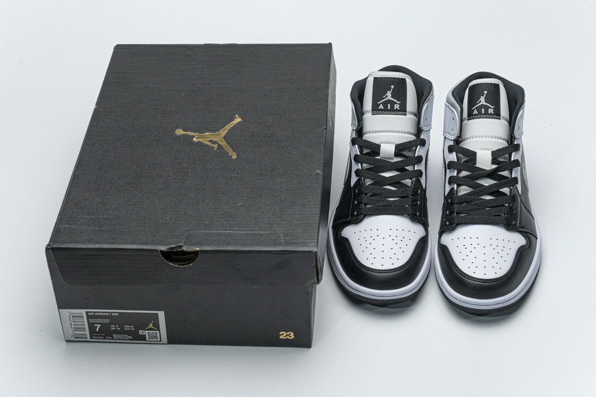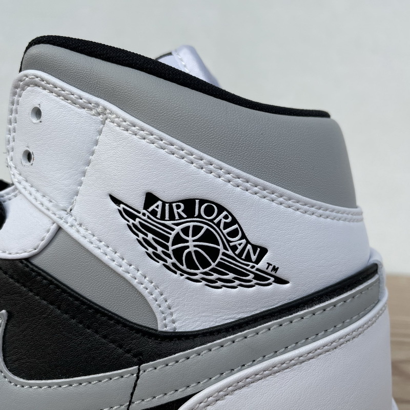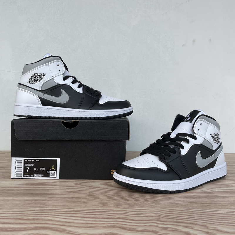 Product description:This “White Shadow” edition of the mid-top Air Jordan 1 features White leather covering the toe and rear overlays with Black on the side panels, forefoot and toe overlay. Finishing details includes Grey Swooshes and ankle collar along with Black laces, liner, tongue tags, Wings logo atop a White midsole and Black rubber outsole.